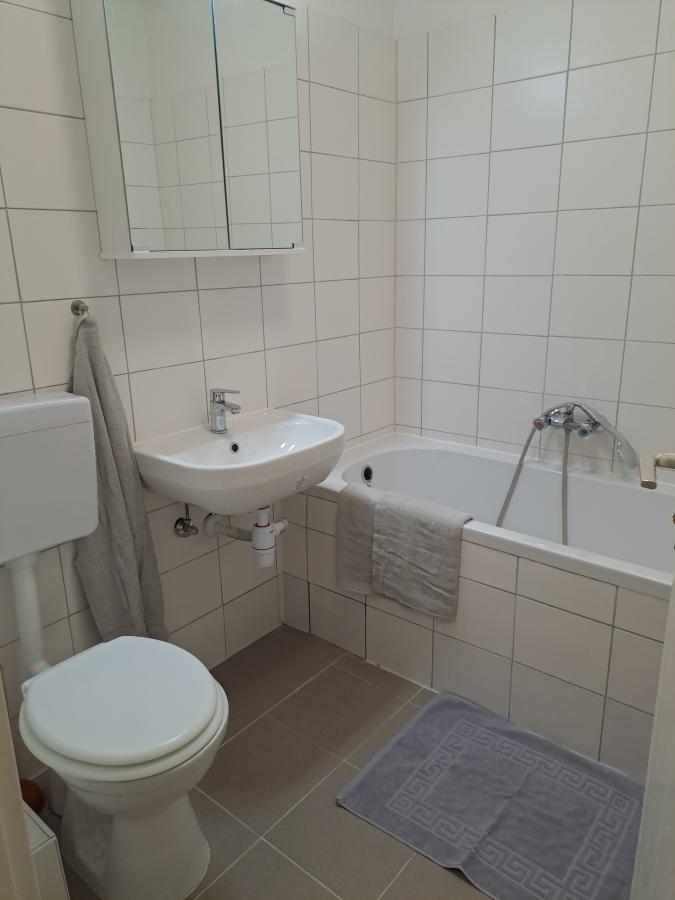 The bathroom with bathtub is newly renovated. The flat is equipped with gas heating.